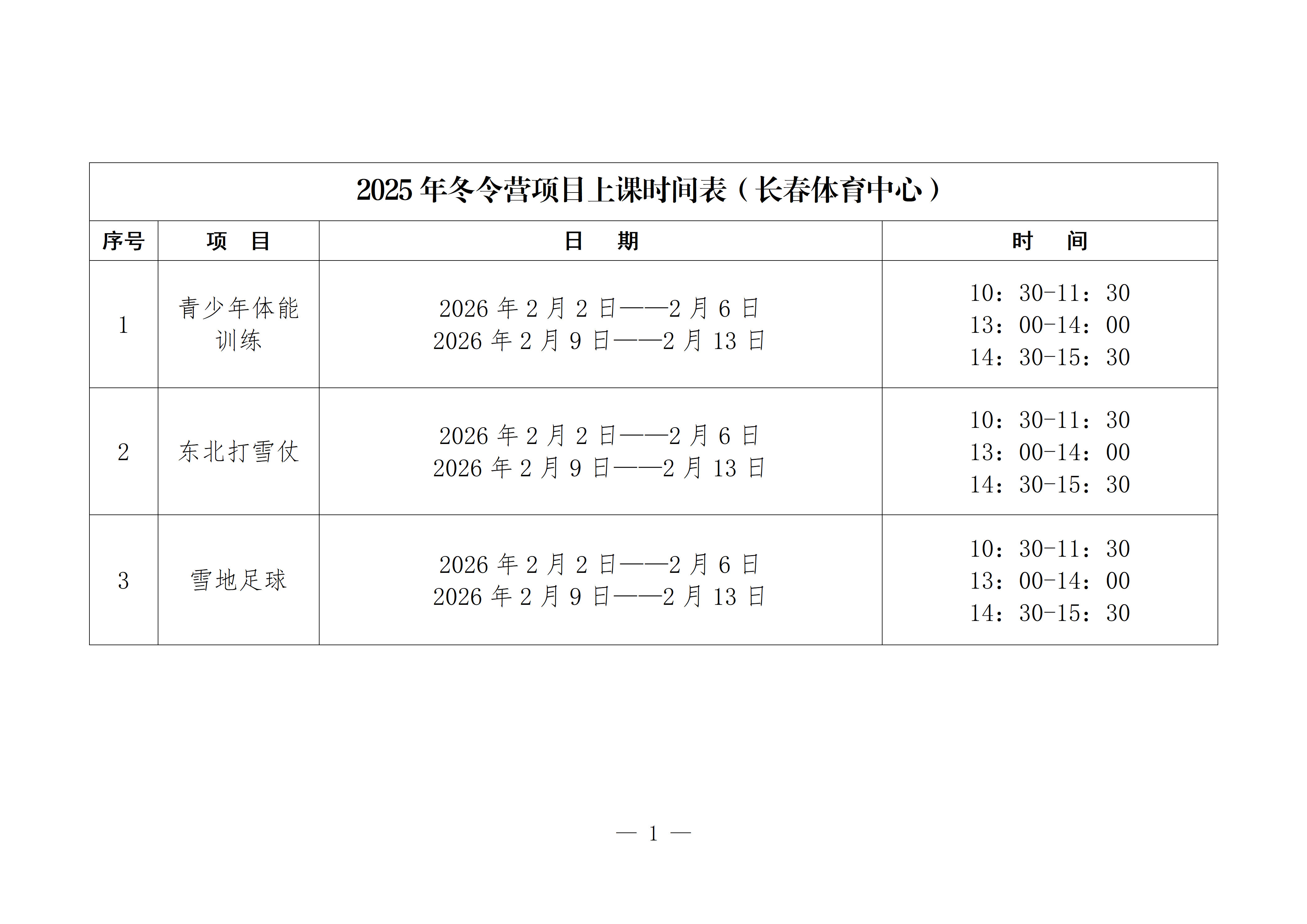 为进一步丰富长春市青少年冬令营体育公益培训内容,充分发挥体育公益培训在增强青少年体质、传承地域特色体育文化、培养团队协作精神等方面的重要作用,结合冬季气候特点及青少年运动需求,我局经研究决定,在原有培训项目基础上,新增青少年体能训练、东北打雪仗、雪地足球3项体育公益培训项目,现将有关事宜补充通知如下: