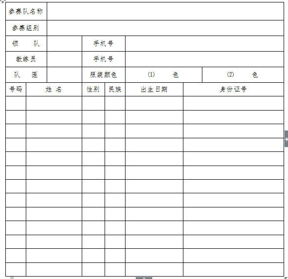 注:1、报名表号码须与上场服装号码须一致,抵达赛区后不得以任何理由更改。报名表电子版用于制作秩序册,如有错误,自行负责。